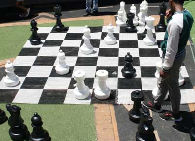 Slovas chess will come with chess equipment including giant chess pieces to the venue where you are holding the event.